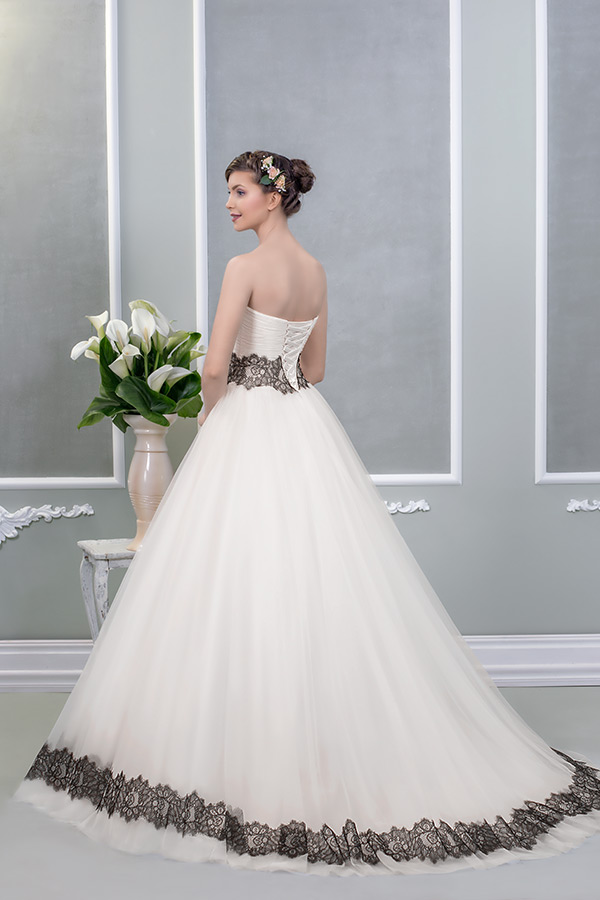 Rochia de mireasa Alisa stil princess este dedicata mireselor indraznete si care vor o pata de culoare, la comanda se poate inlocui negrul cu alte nuante dorite. Decolteul drept la piept, avantajeaza orice tip de cupa. Materiale folosite: tulle, tafta,broderie. ; captuseala : bumbac, poliester. ;culori : alb, ivoire, stil pricess.