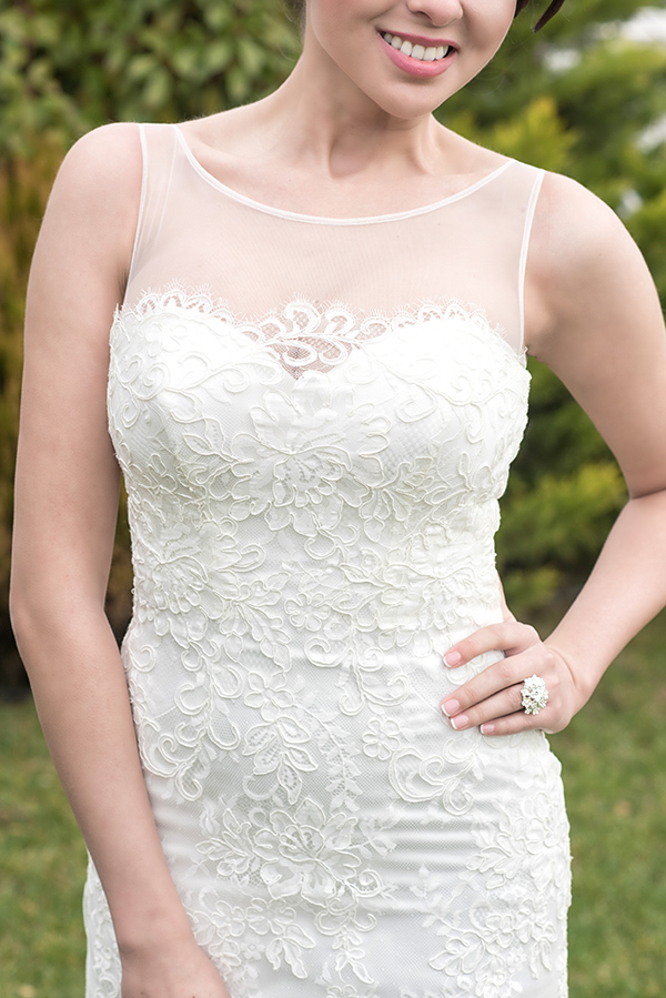 Rochia de mireasa Amalia este o rochie stil sirena din dantela. Decolteul este in forma de inimioara frumos conturat de elemente dantelate. Pentru un plus de eleganta rochia se incheie la spate cu fermoar ascuns si nasturi imbracati. Materiale folosite: dantela, tafta, tulle; captuseala: bumbac si poliester. Nuante disponibile: alb si ivoire.