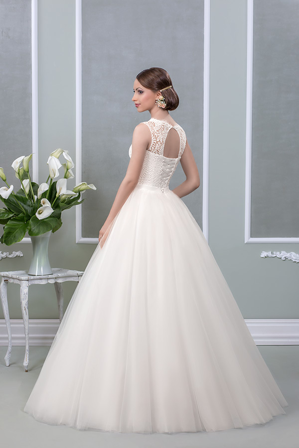 Rochia de mireasa Ingrid este o rochie stil printesa , decupata in forma de inima la piept , cu bretele din,tipar, si accesorizata cu un brau lucrat de mana cu elemente swarovski, materiale: tulle, tafta , dantela; captuseala: bumbac, poliester, ; culori: alb, ivoire, stil princess.