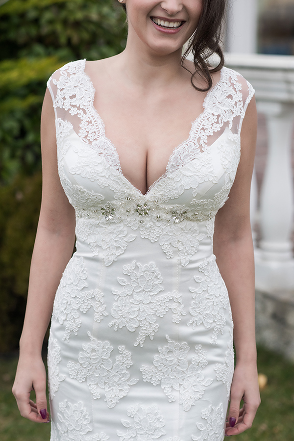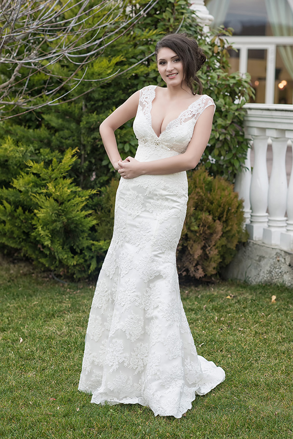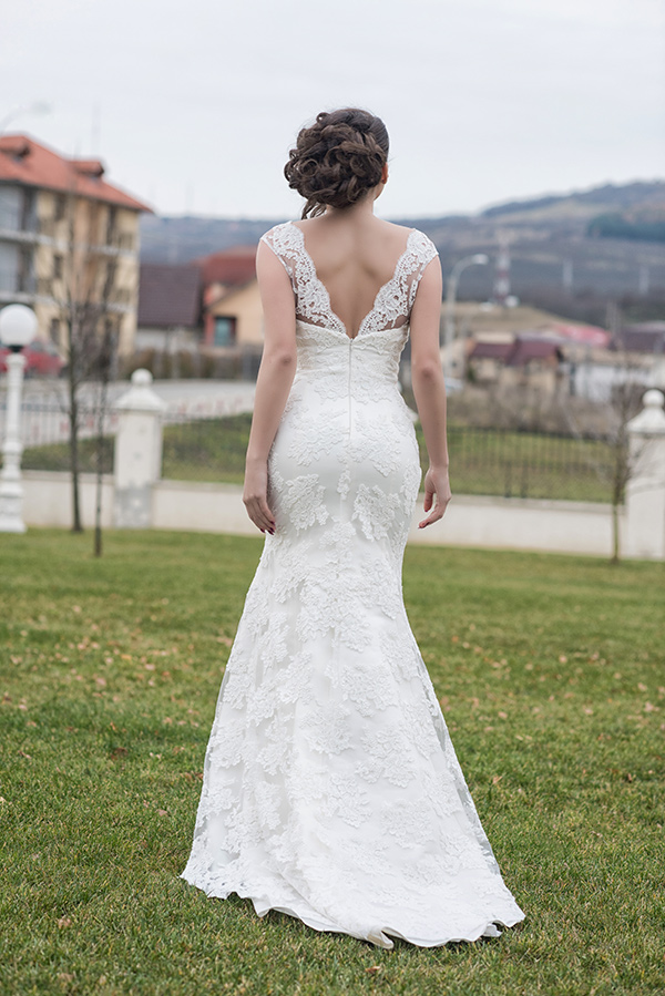 Rochia de mireasa Narcisa este o rochie tip sirena. Se remarca prin decolteul generos, in V, conturat de dantela care pune in valoare bustul. Rochia este accesorizata cu elemente swarovski aplicate manual, care impreuna cu dantela contribuie la eleganta acestei rochii. Materiale folosite: dantela, tulle, tafta; captuseala: bumbac si poliester. Nuante disponibile: alb si ivoire.